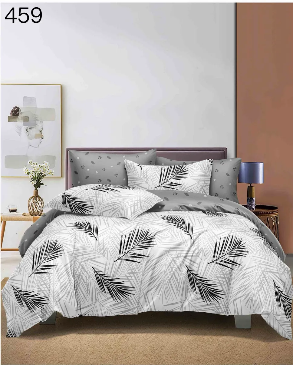 EAST COMFORT Lenjerie de pat Finet 6 piese, alb cu frunze tropicale negre-GR459