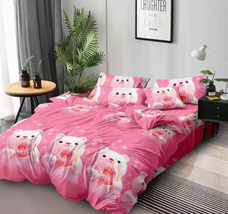 Profită de oferta specială și transformă-ți dormitorul într-o oază de relaxare! Cu seturile noastre Lenjerie de pat Finet 6 piese, roz cu ursuleti adorabili si gogosi-KY84, primești de două ori mai mult confort la un preț avantajos. Aceste lenjerii sunt create dintr-un material plăcut la atingere, moale și catifelat, perfect pentru un somn odihnitor. Materialul dens este ideal pentru nopțile mai răcoroase, nu se șifonează ușor și își păstrează culorile vibrante, spălare după spălare, aducând un plus de stil și eleganță în camera ta.