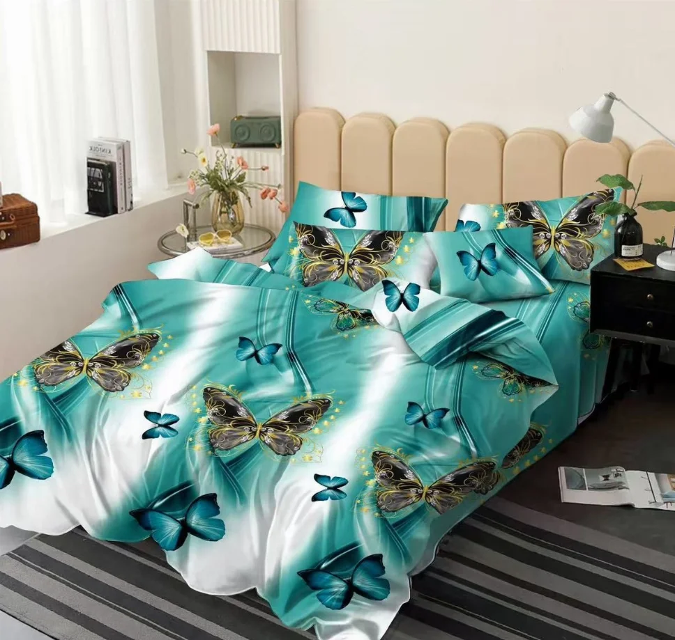Lenjerie de pat Finet 6 piese, turcoaz cu fluturi aurii-KY109