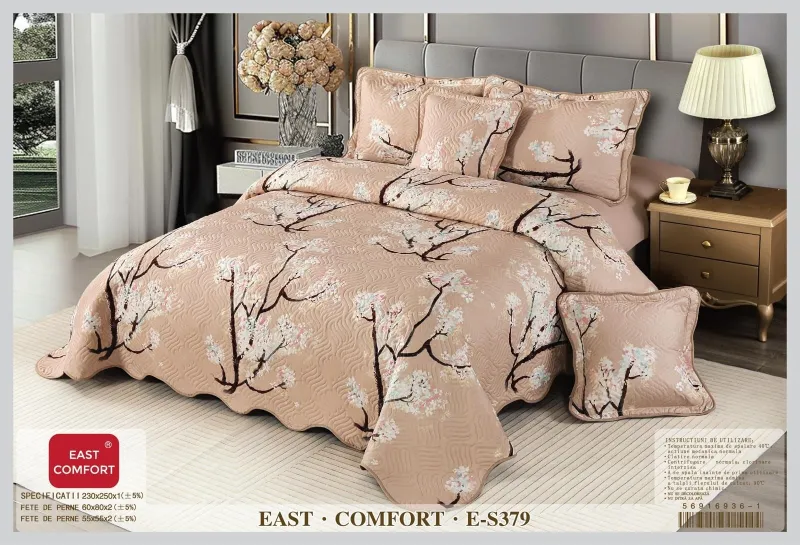 EAST COMFORT Cuvertura matlasata din bumbac 5 piese,Bej crengute-ES379