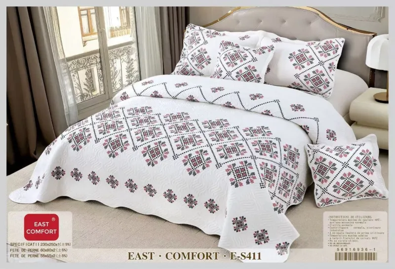 Practica și Eleganta! Asa poate fi descrisa aceasta cuvertura, cu model floral imprimat in material ce va aduce si mai multa eleganta dormitorului dumneavoastra. Acesata garnitura de pat este produsa in Romania, de brandul East Confort fiind recunoscut prin calitatea produselor sale.