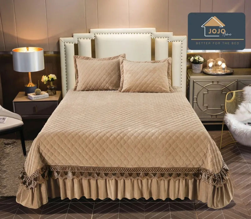 JOJO HOME Cuvertura de Catifea+2 Fete de perna,Bej-C7