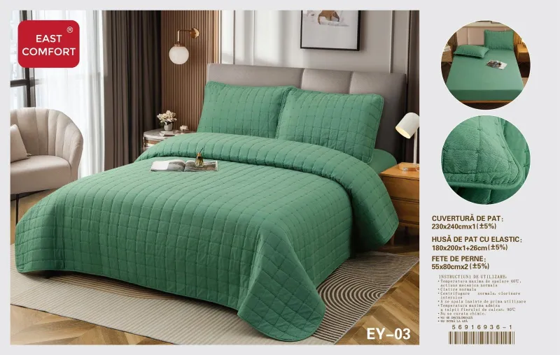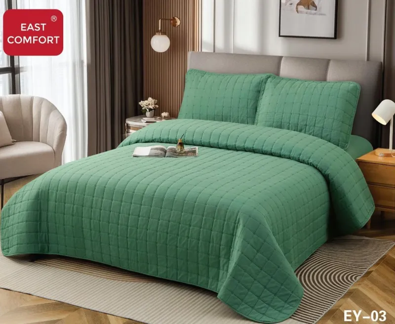 EAST COMFORT Cuvertura+Husa de pat cu elastic+2 Fete de perna,Verde-EY03