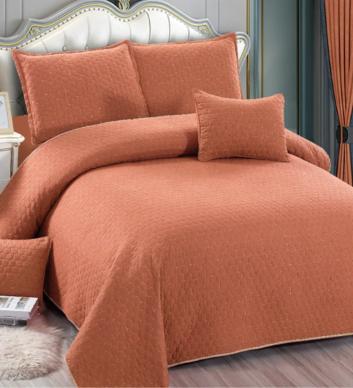 EAST COMFORT Cuvertura Pat matlasată, Policoton, Tesatura Ranforce, 5 Piese, Caramiziu-E263