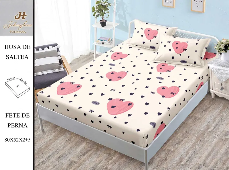 PUCIOASA Husa de pat din Finet cu elastic+ 2 fete de perna 180x200 -HG254