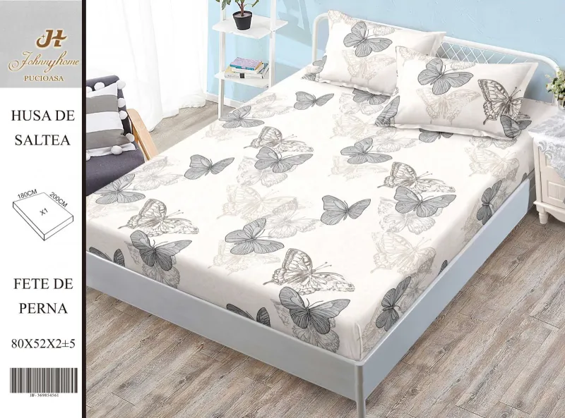 PUCIOASA Husa de pat din Finet cu elastic+ 2 fete de perna 180x200 -HG278