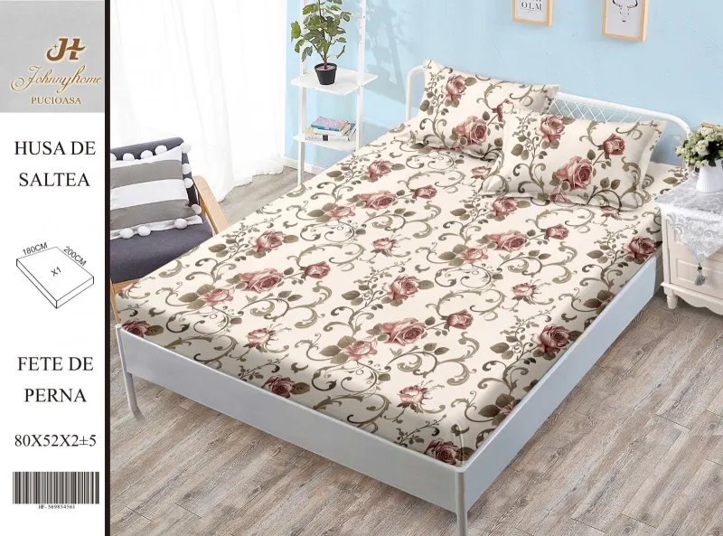 PUCIOASA Husa de pat din Finet cu elastic+ 2 fete de perna 180x200 -HG291