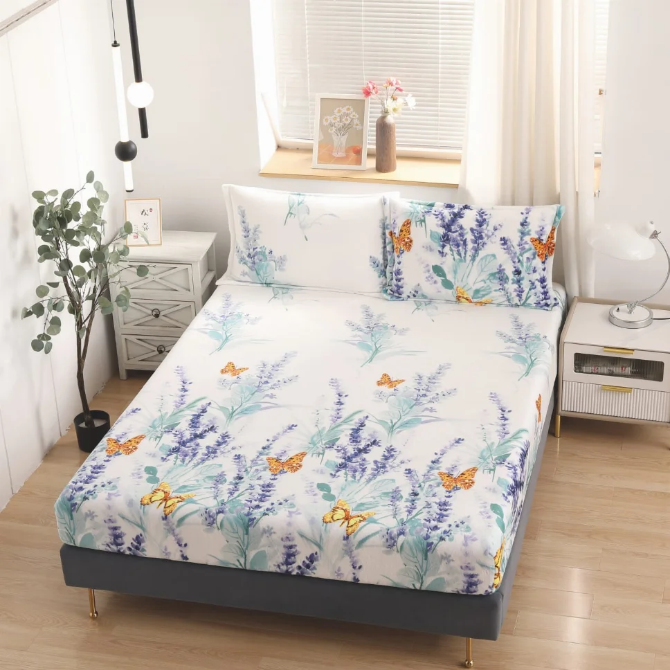 Huse de pat cocolino 180x200 cm, alb cu lavandă și fluturi-HJC163