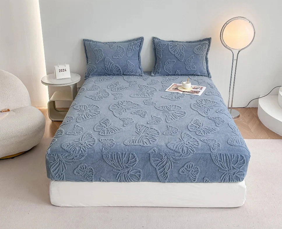 Transformă-ți dormitorul într-un sanctuar de confort cu Huse de pat cocolino 180x200 cm, albastru cu fluturi texturati-HJC120. Realizată dintr-un material Cocolino pufos și incredibil de moale la atingere, această husă de pat cu elastic este special concepută pentru a se potrivi perfect saltelei tale de 180x200 cm, adăugând un plus de căldură și stil.