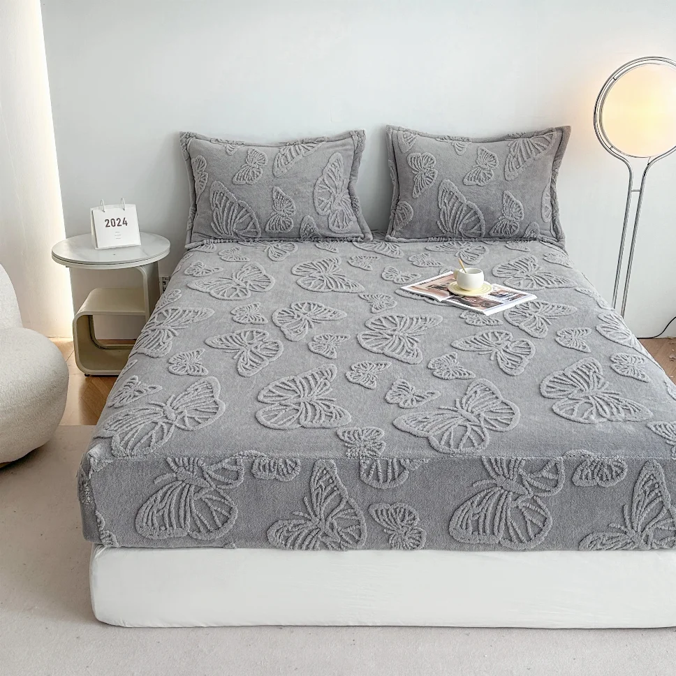 Transformă-ți dormitorul într-un sanctuar de confort cu Huse de pat cocolino 180x200 cm, gri cu fluturi brodați-HJC123. Realizată dintr-un material Cocolino pufos și incredibil de moale la atingere, această husă de pat cu elastic este special concepută pentru a se potrivi perfect saltelei tale de 180x200 cm, adăugând un plus de căldură și stil.