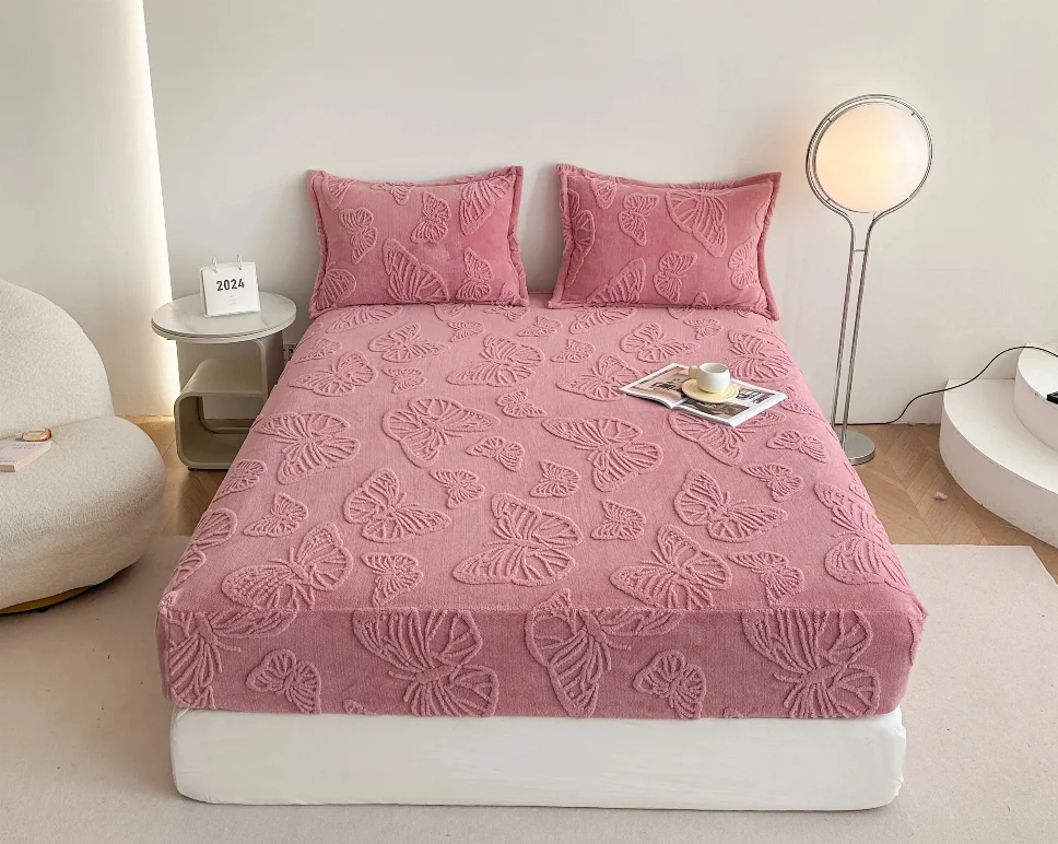 Transformă-ți dormitorul într-un sanctuar de confort cu Huse de pat cocolino 180x200 cm, roz cu fluturi în relief-HJC121. Realizată dintr-un material Cocolino pufos și incredibil de moale la atingere, această husă de pat cu elastic este special concepută pentru a se potrivi perfect saltelei tale de 180x200 cm, adăugând un plus de căldură și stil.