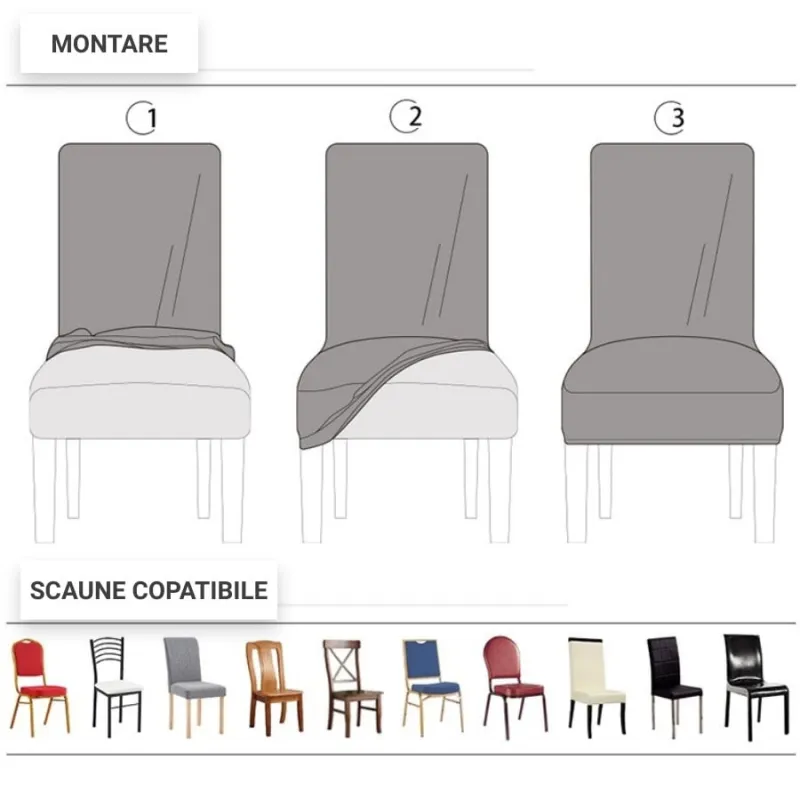 Set 6 huse Lycra cu elastic pentru scaun Negru-HL6