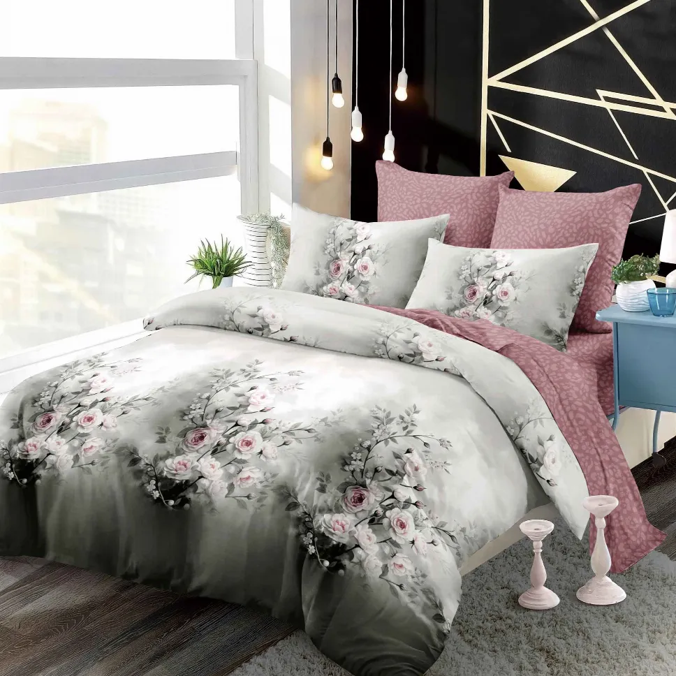 Descoperă setul Lenjerii de pat Finet 6 piese cu Elastic, alb cu flori roz și gri-FEL263, partenerul tău ideal pentru un somn profund și relaxant. Creat dintr-un material special, plăcut la atingere și rezistent, acest set este conceput pentru a-ți aduce confort și a înfrumuseța aspectul dormitorului tău.