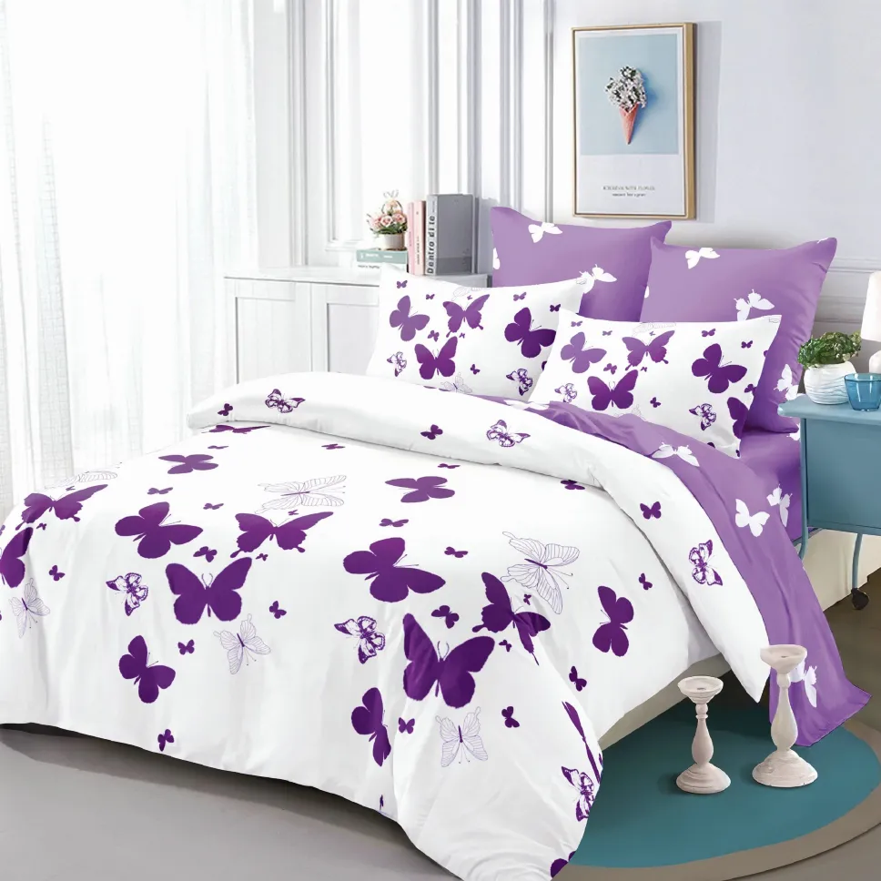 Descoperă setul Lenjerii de pat Finet 6 piese cu Elastic, alb cu fluturi mov-FEL258, partenerul tău ideal pentru un somn profund și relaxant. Creat dintr-un material special, plăcut la atingere și rezistent, acest set este conceput pentru a-ți aduce confort și a înfrumuseța aspectul dormitorului tău.