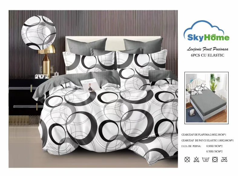 Descoperă Lenjerii de pat Finet 6 piese cu Elastic, alb cu inele negre si gri-SKE31, setul care aduce în dormitorul tău echilibrul perfect între stil și confort practic. Realizată dintr-un material plăcut la atingere și rezistent, această lenjerie este concepută pentru a-ți oferi un somn liniștit și odihnitor, noapte de noapte.
