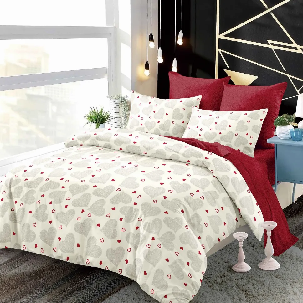 Descoperă setul Lenjerii de pat Finet 6 piese cu Elastic, bej cu inimioare roșii și gri-FEL261, partenerul tău ideal pentru un somn profund și relaxant. Creat dintr-un material special, plăcut la atingere și rezistent, acest set este conceput pentru a-ți aduce confort și a înfrumuseța aspectul dormitorului tău.