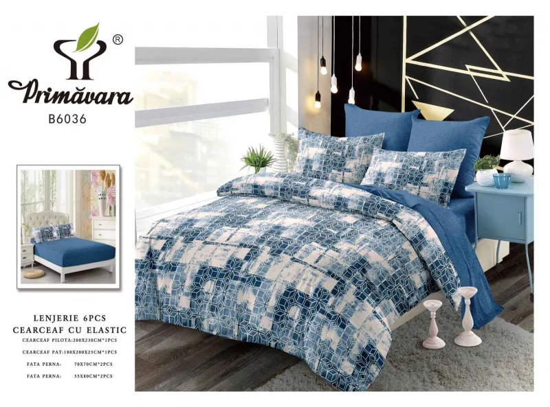 Descoperă setul Lenjerii de pat Finet 6 piese cu Elastic-FEL180, partenerul tău ideal pentru un somn profund și relaxant. Creat dintr-un material special, plăcut la atingere și rezistent, acest set este conceput pentru a-ți aduce confort și a înfrumuseța aspectul dormitorului tău.