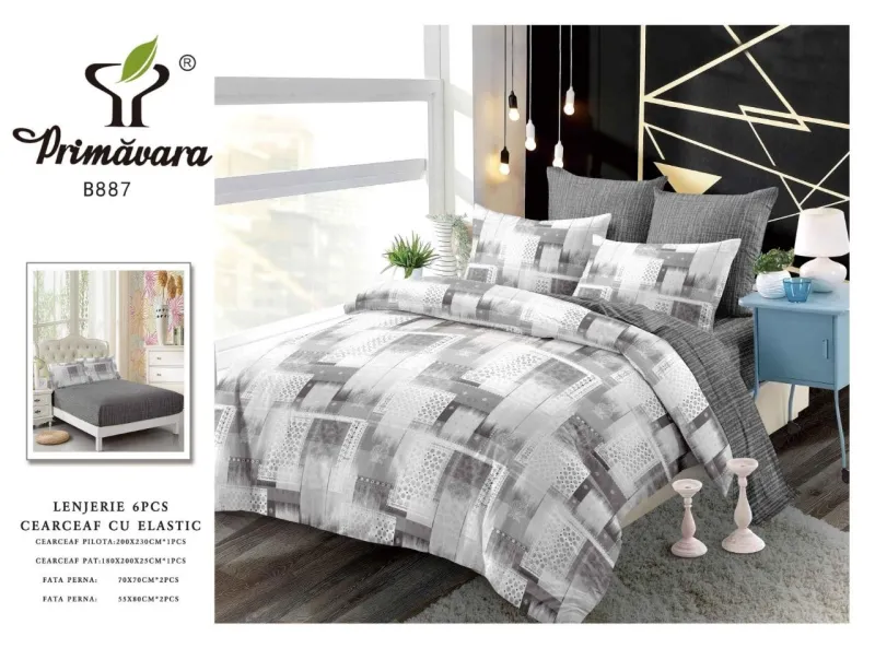 Descoperă setul Lenjerii de pat Finet 6 piese cu Elastic-FEL215, partenerul tău ideal pentru un somn profund și relaxant. Creat dintr-un material special, plăcut la atingere și rezistent, acest set este conceput pentru a-ți aduce confort și a înfrumuseța aspectul dormitorului tău.