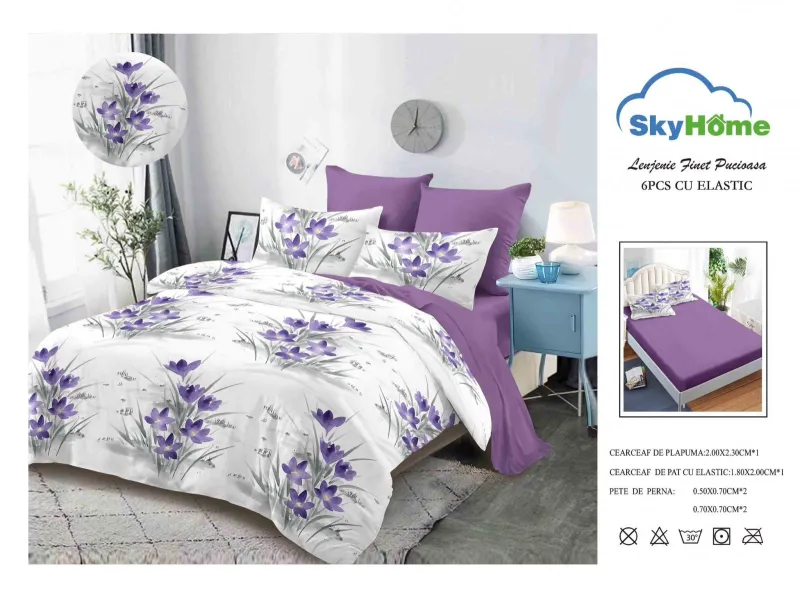 Descoperă Lenjerii de pat Finet 6 piese cu Elastic-SKE19, setul care aduce în dormitorul tău echilibrul perfect între stil și confort practic. Realizată dintr-un material plăcut la atingere și rezistent, această lenjerie este concepută pentru a-ți oferi un somn liniștit și odihnitor, noapte de noapte.
