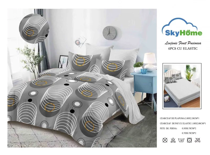 Descoperă Lenjerii de pat Finet 6 piese cu Elastic-SKE5, setul care aduce în dormitorul tău echilibrul perfect între stil și confort practic. Realizată dintr-un material plăcut la atingere și rezistent, această lenjerie este concepută pentru a-ți oferi un somn liniștit și odihnitor, noapte de noapte.