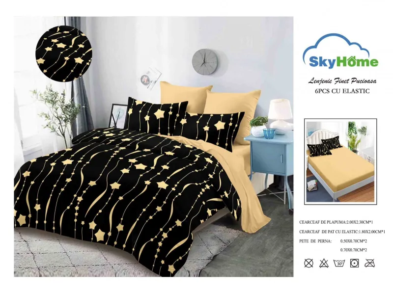Descoperă Lenjerii de pat Finet 6 piese cu Elastic-SKE6, setul care aduce în dormitorul tău echilibrul perfect între stil și confort practic. Realizată dintr-un material plăcut la atingere și rezistent, această lenjerie este concepută pentru a-ți oferi un somn liniștit și odihnitor, noapte de noapte.