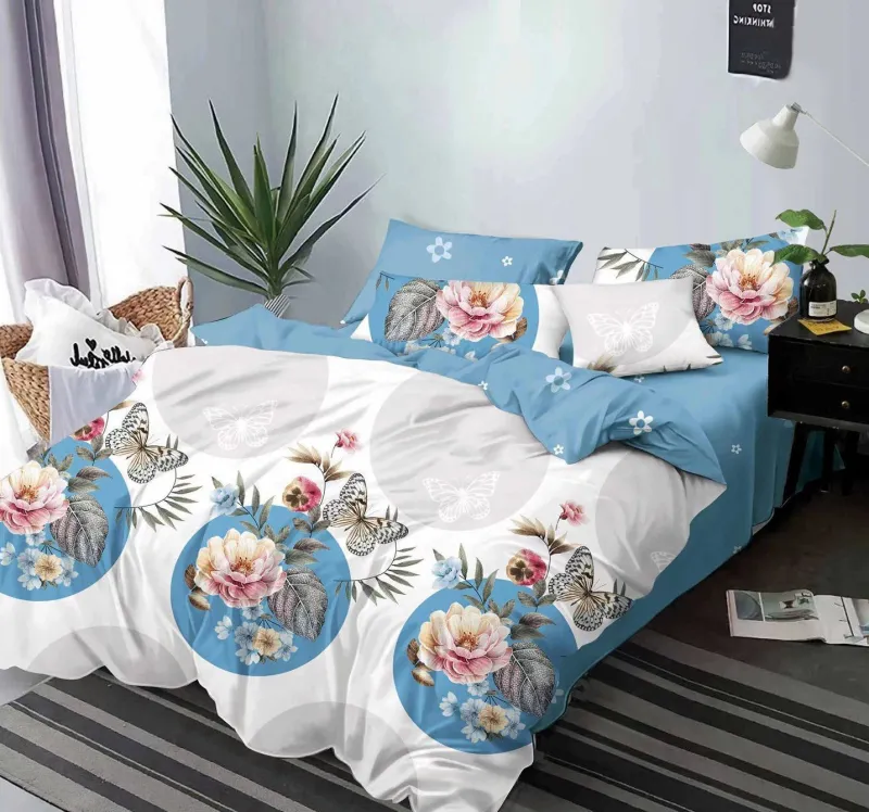 Lenjerie de pat Finet 6 piese,Alb/Bleu cu cercuri si bujori-KY46