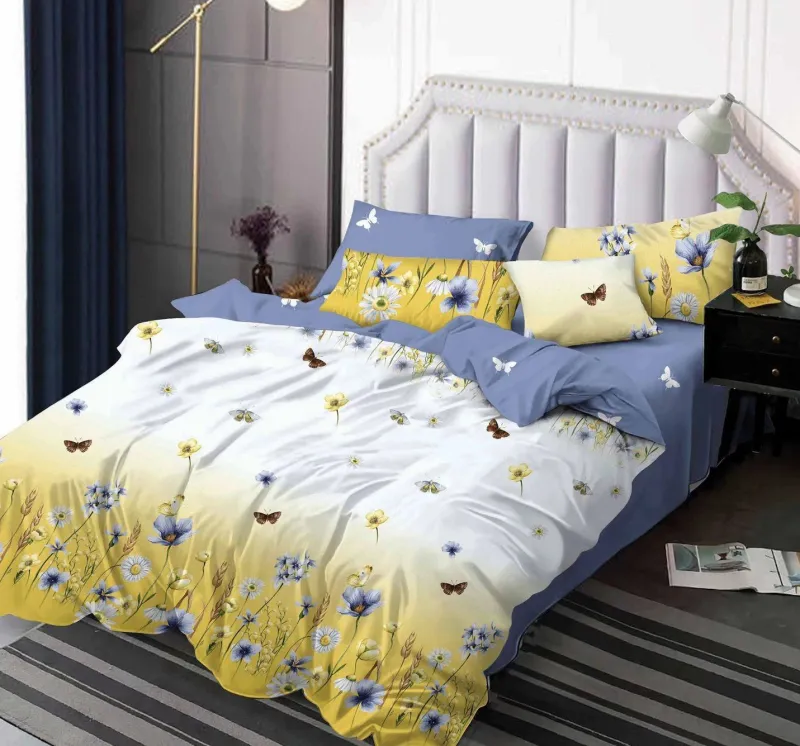 Lenjerie de pat Finet 6 piese,Alb/Galben degrade,Flori si Fluturi-KY48
