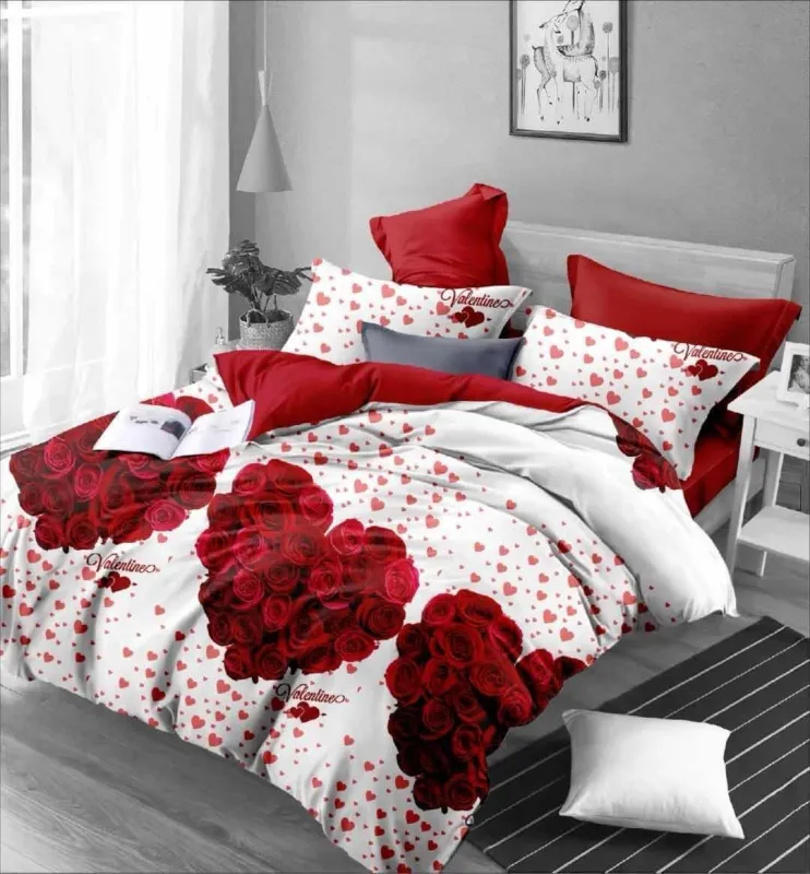 Profită de oferta specială și transformă-ți dormitorul într-o oază de relaxare! Cu seturile noastre Lenjerie de pat Finet 6 piese,Alb/Rosu,Inimioare de trandafirii -KY30, primești de două ori mai mult confort la un preț avantajos. Aceste lenjerii sunt create dintr-un material plăcut la atingere, moale și catifelat, perfect pentru un somn odihnitor. Materialul dens este ideal pentru nopțile mai răcoroase, nu se șifonează ușor și își păstrează culorile vibrante, spălare după spălare, aducând un plus de stil și eleganță în camera ta.