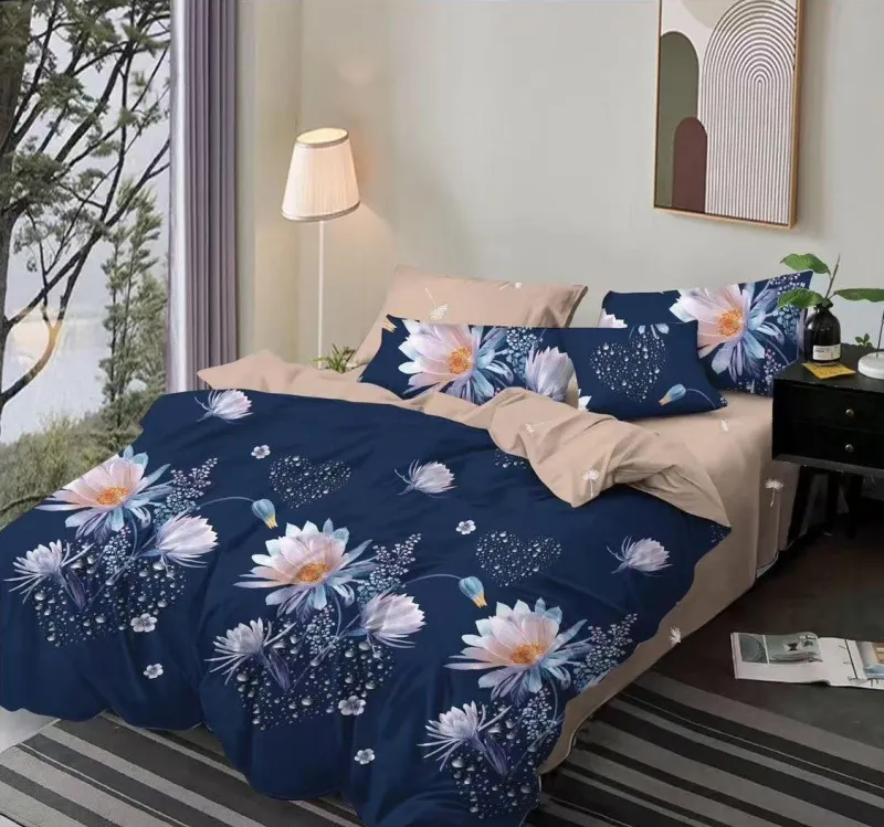 Lenjerie de pat Finet 6 piese,Bej/Albastru,Nuferi-KY70