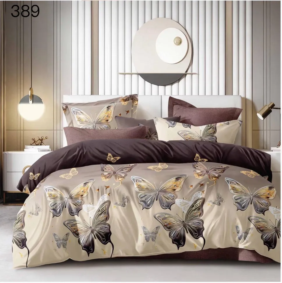 EAST COMFORT Lenjerie de pat Finet 6 piese, bej cu fluturi gri argintii și aurii-GR389