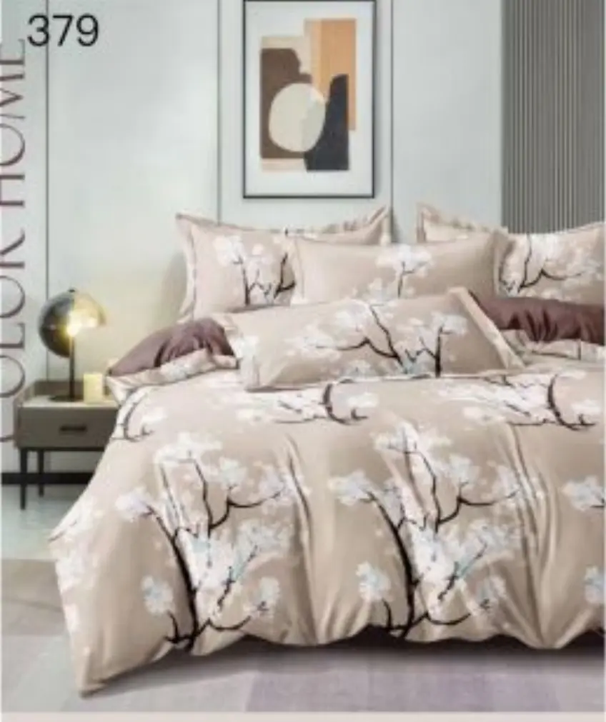EAST COMFORT Lenjerie de pat Finet 6 piese,Pat dublu,Bej,copacei infloriti-GR379