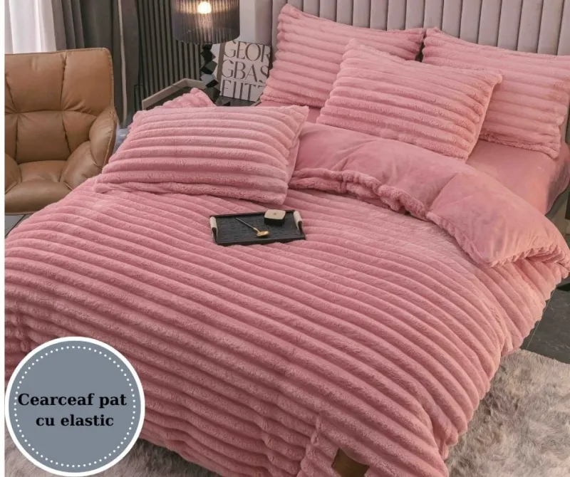 Transformă-ți dormitorul într-un sanctuar al confortului cu Lenjeria de Pat Cocolino cu Blăniță de Iepure Artificială - Set cu 4 Piese pentru Pat Dublu!