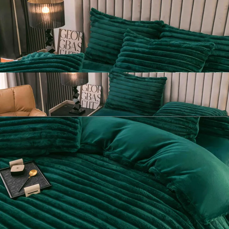 JOJO HOME Lenjerie pat dublu, Extra Pufoasa,din Blanita artificiala de Iepure, 4 piese,Verde-BV21