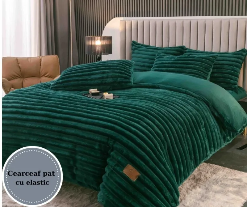 Transformă-ți dormitorul într-un sanctuar al confortului cu Lenjeria de Pat Cocolino cu Blăniță de Iepure Artificială - Set cu 4 Piese pentru Pat Dublu!