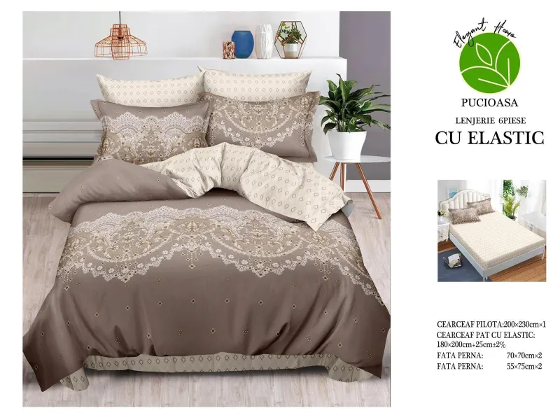 PUCIOASA Lenjerii de pat Finet 6 piese cu Elastic-T163