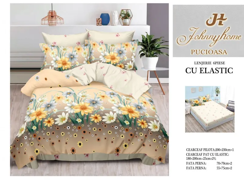 PUCIOASA Lenjerii de pat Finet 6 piese cu Elastic-T170