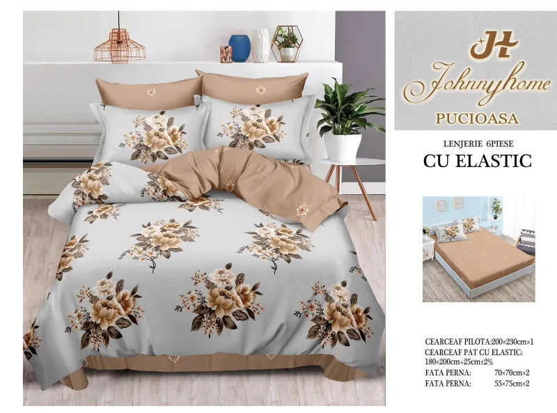 PUCIOASA Lenjerii de pat Finet 6 piese cu Elastic-T212