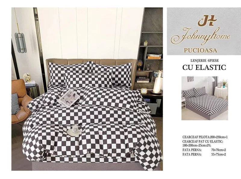 Lenjerii de pat Finet 6 piese cu Elastic-T228, descoperă confortul și rafinamentul oferite de setul de lenjerie de pat tip finet, format din 6 piese, într-o nuanță elegantă. Această colecție excepțională este realizată dintr-un bumbac tratat special, conferind tesaturii sale o senzație moale și durabilitate remarcabilă în timp. Este alegerea perfectă pentru a-ți menține patul mereu proaspăt și impecabil.