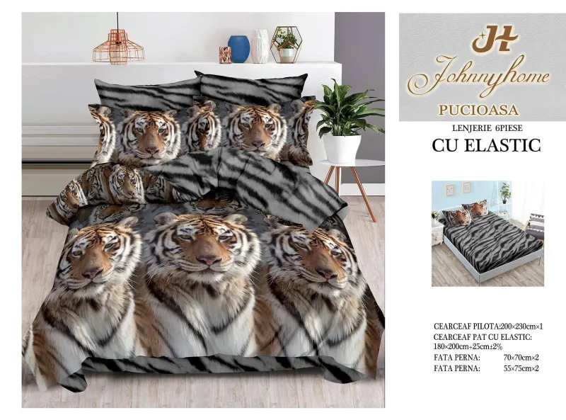 Lenjerii de pat Finet 6 piese cu Elastic-T69, descoperă confortul și rafinamentul oferite de setul de lenjerie de pat tip finet, format din 6 piese, într-o nuanță elegantă. Această colecție excepțională este realizată dintr-un bumbac tratat special, conferind tesaturii sale o senzație moale și durabilitate remarcabilă în timp. Este alegerea perfectă pentru a-ți menține patul mereu proaspăt și impecabil.