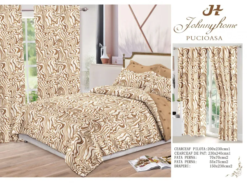 PUCIOASA Lenjerie de pat Finet, 6 piese+ 2 Draperii CADOU,Maro-FD12