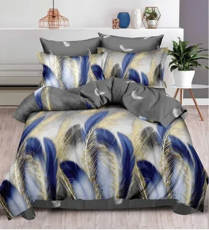 PUCIOASA Lenjerie de pat Finet 6 piese,Gri cu pene albastre-R463