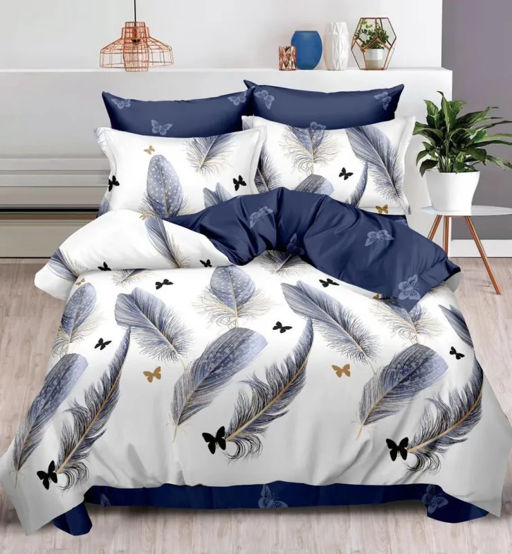 PUCIOASA Lenjerie de pat Finet Pucioasa 6 piese,Alb/Albastru cu Pene-R462