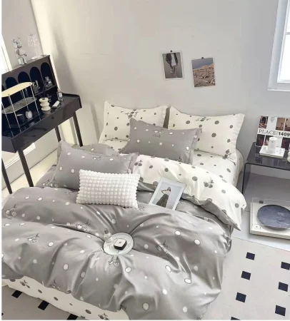 Ce bine arată camera cu lenjeria asta! Finet Pucioasa, alb cu gri și buline cu cireșe...parcă e mai cald și mai primitor. Materialul e super la atingere, moale, fix ce trebuie pentru un somn odihnitor. Sper să le placă și nașilor, am zis că merită ceva frumos și de calitate!