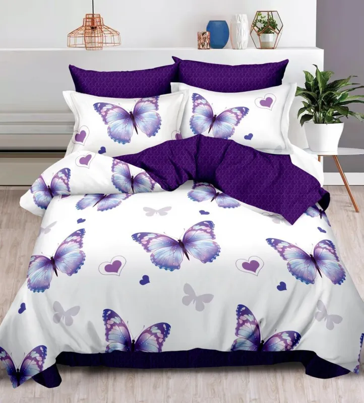 PUCIOASA Lenjerie de pat Finet Pucioasa 6 piese,Alb/Mov cu fluturi-R347