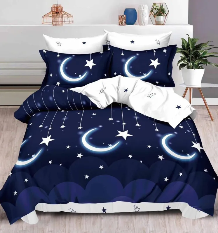 Noile mele așternuturi cu luna și stele pe fond bleumarin au transformat dormitorul într-un sanctuar de liniște. Finetul este incredibil de moale, iar senzația la atingere este divină. Camera arată acum mult mai primitoare și relaxantă. Sunt extrem de mulțumită de alegerea făcută!