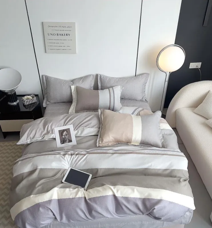 PUCIOASA Lenjerie de pat Finet Pucioasa 6 piese,Gri cu Linii-R544