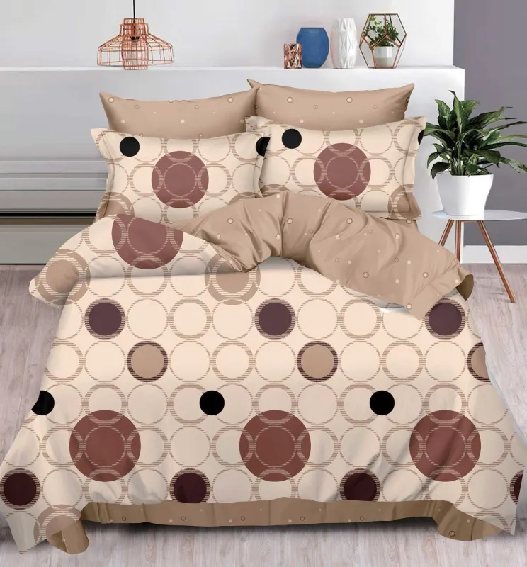 PUCIOASA Lenjerie de pat Finet Pucioasa 6 piese,Maro/Bej cu Cercuri si Buline-R413
