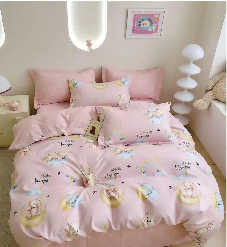 PUCIOASA Lenjerie de pat Finet Pucioasa 6 piese,Roz cu Ursuleti-R607