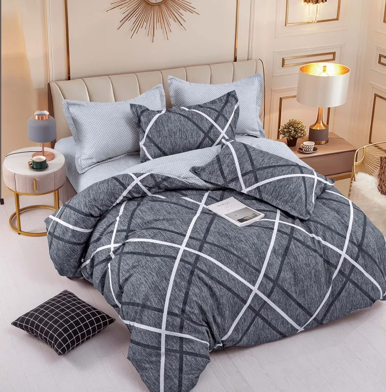 JOJO HOME Lenjerie de pat,6 Piese, finet,Gri cu Linii-FJ225