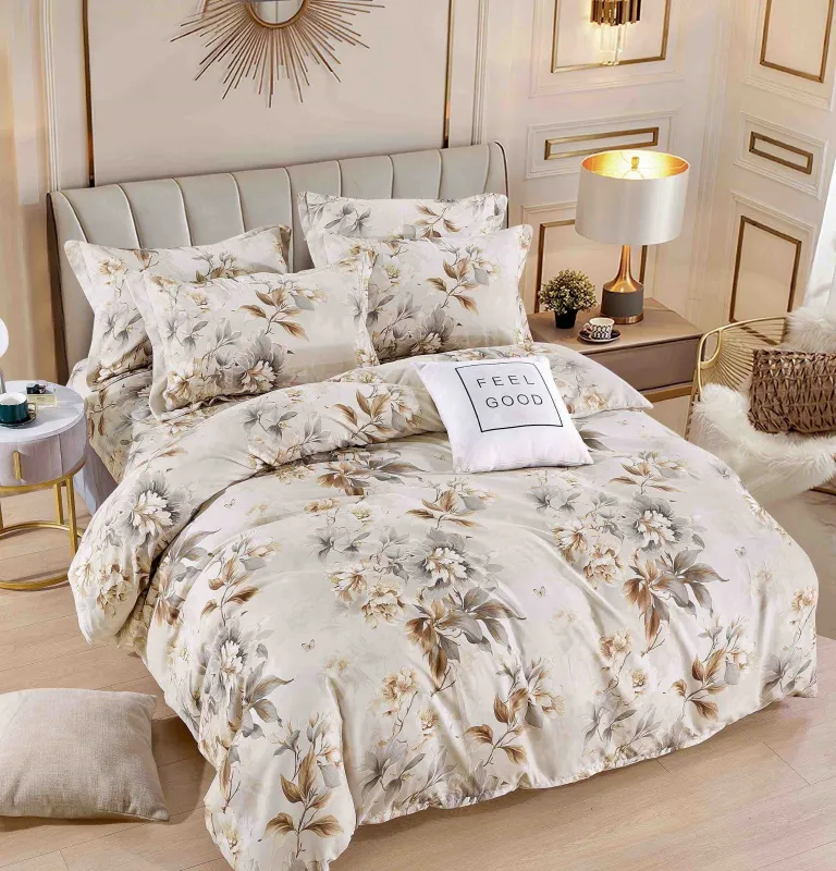 JOJO HOME Lenjerie de pat,6 Piese, finet,pat dublu,bej cu bujori-FJ173